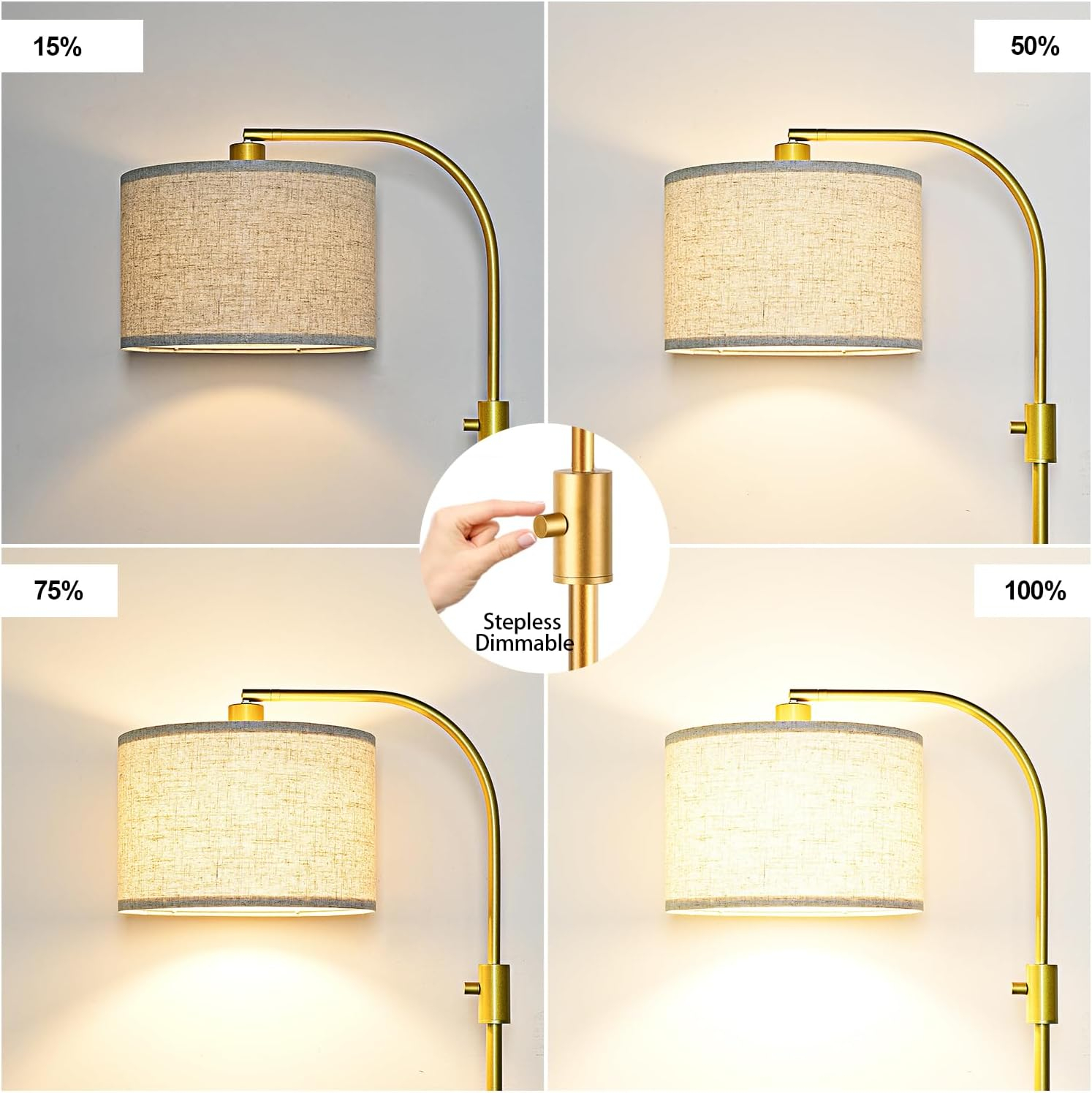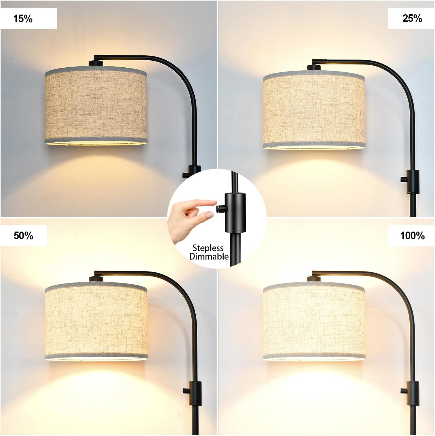 1. This Modern Floor Lamp is a Fully Stepless Dimmable Pattern from 0 to 100%, which means you can rotate the switch to set any brightness you like.